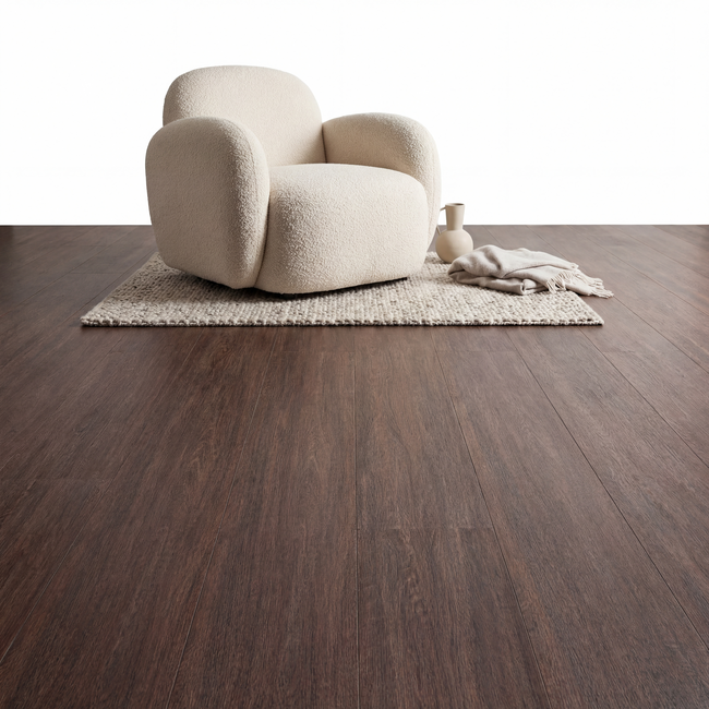 De Kaleo Ultra Matte Laminaatvloer combineert modern design met ultiem gebruiksgemak. Met zijn rijke donkerbruine kleur, voegt deze vloer direct een warme, natuurlijke uitstraling toe aan elke ruimte. De ultra matte afwerking versterkt het authentieke gevoel van hout, zonder de traditionele glans van laminaat, waardoor een meer verfijnde, moderne sfeer ontstaat.